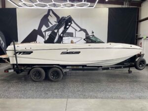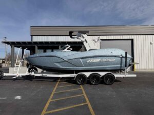 With jaw-dropping design and an ultra-smooth ride, this 25-footer is quickly becoming an MB best-seller – and for good reason. Featuring a massive 5,500+ lbs of ballast, MB’s exclusive surf system, and a hull engineered for perfection, this boat doesn’t just make a wave – it creates THE WAVE.